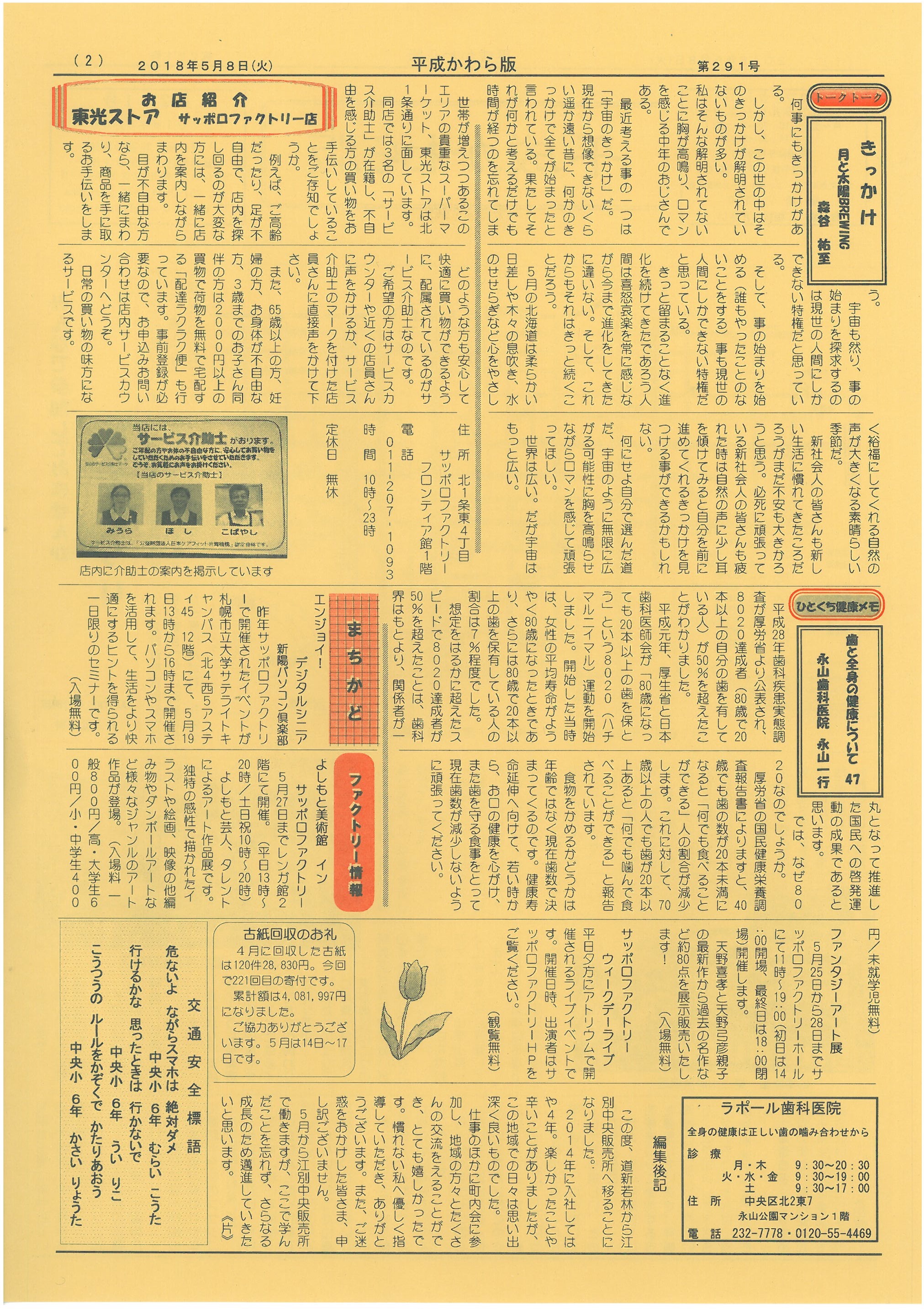 札幌の中央区東側創成イースト地区で創業105年!地元密着のミニコミ紙'平成かわら版'を32年間毎月発行中バックナンバーも無料で見られます!