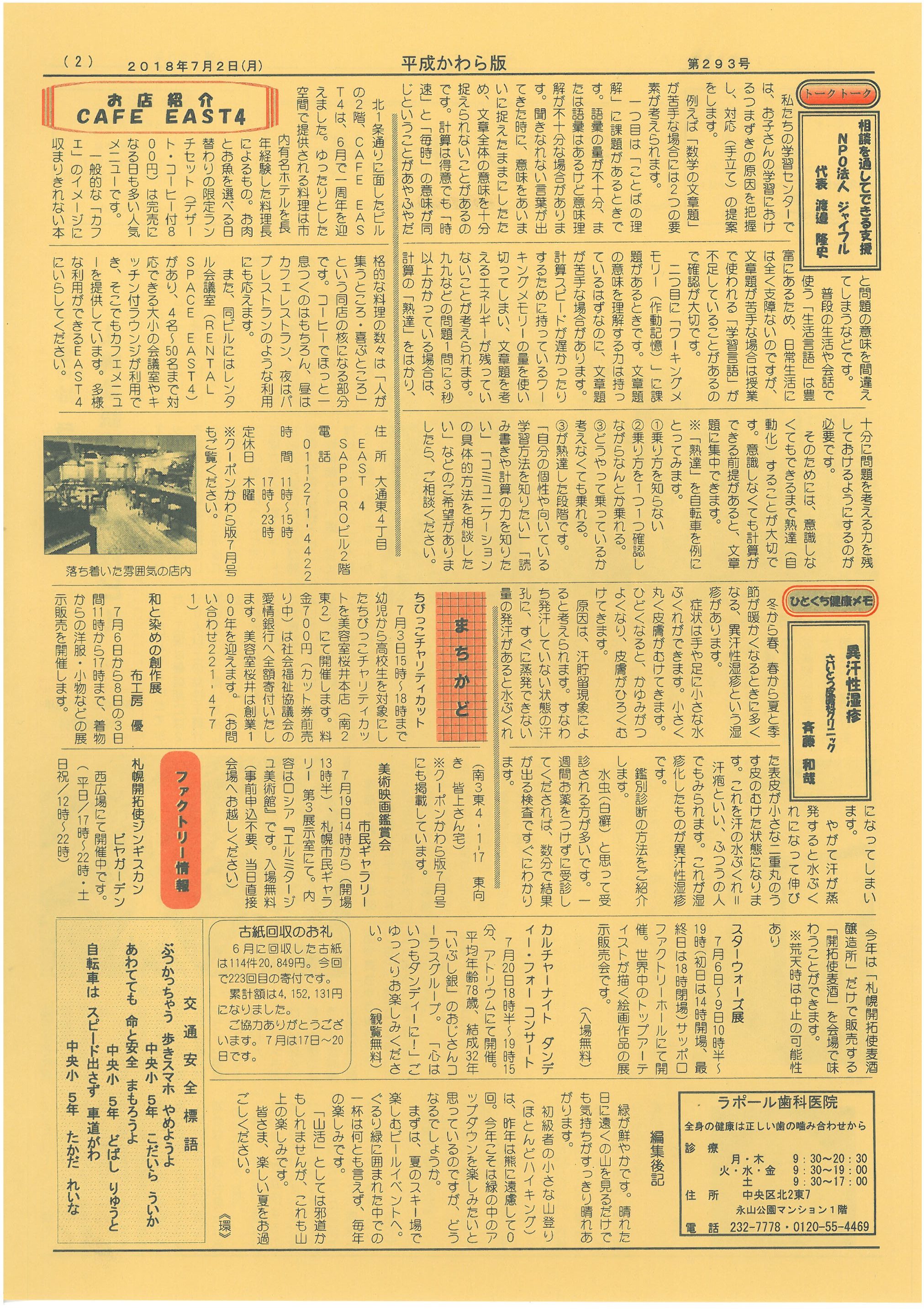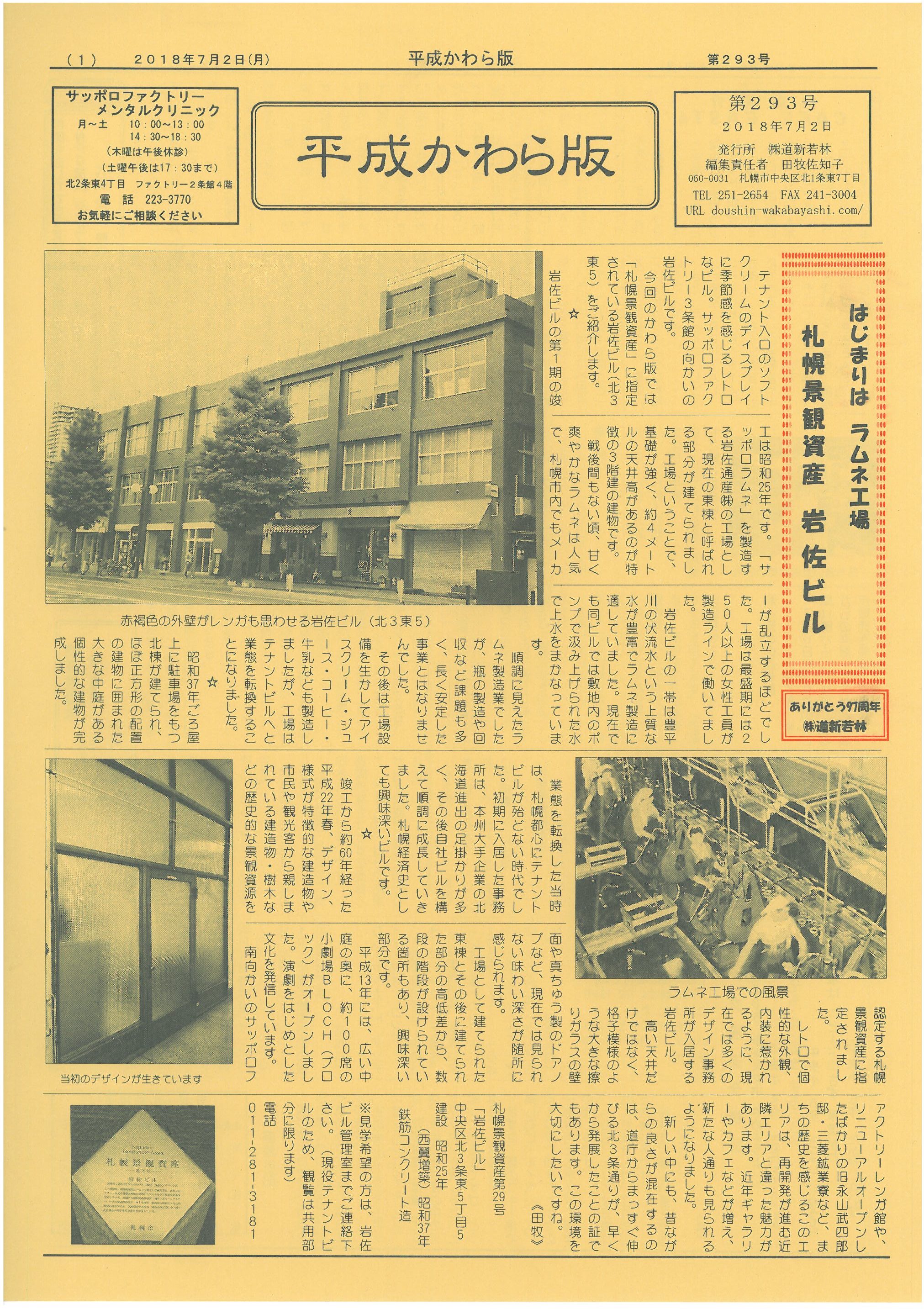 札幌の中央区東側創成イースト地区で創業104年!地元密着のミニコミ紙'平成かわら版'を31年間毎月発行中バックナンバーも無料で見られます!
