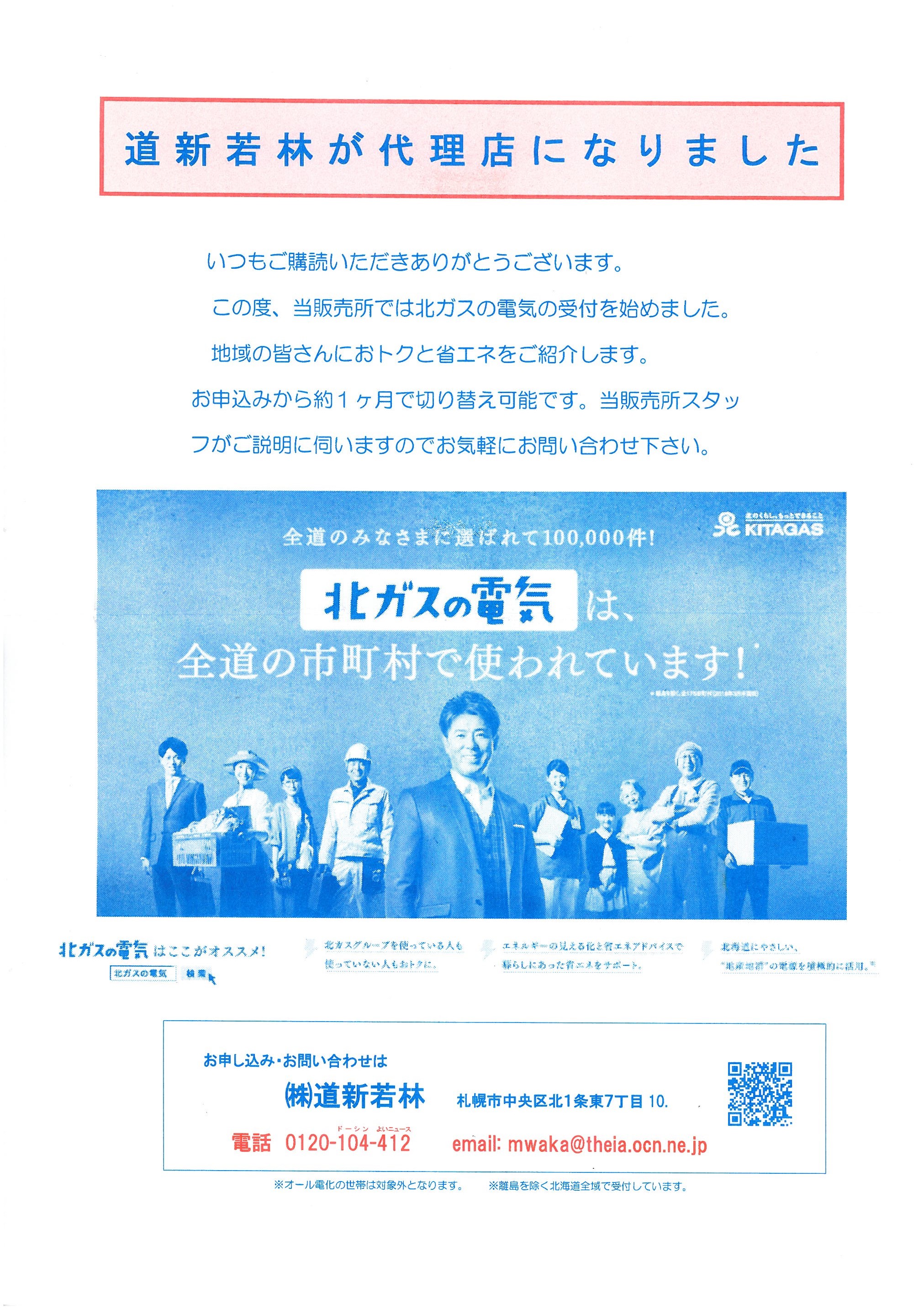 当販売所で北ガスの電気の受付を始めました