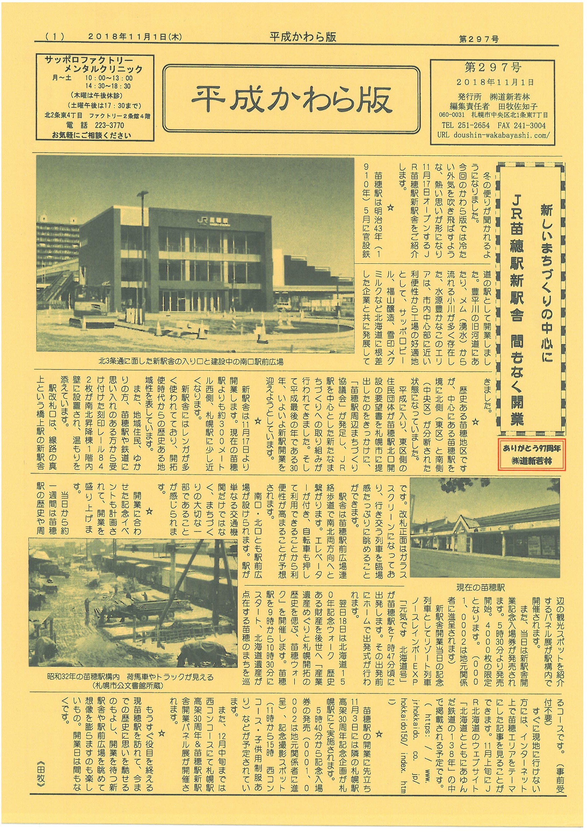 今月の一面はJR苗穂駅新駅舎についてお伝えします。