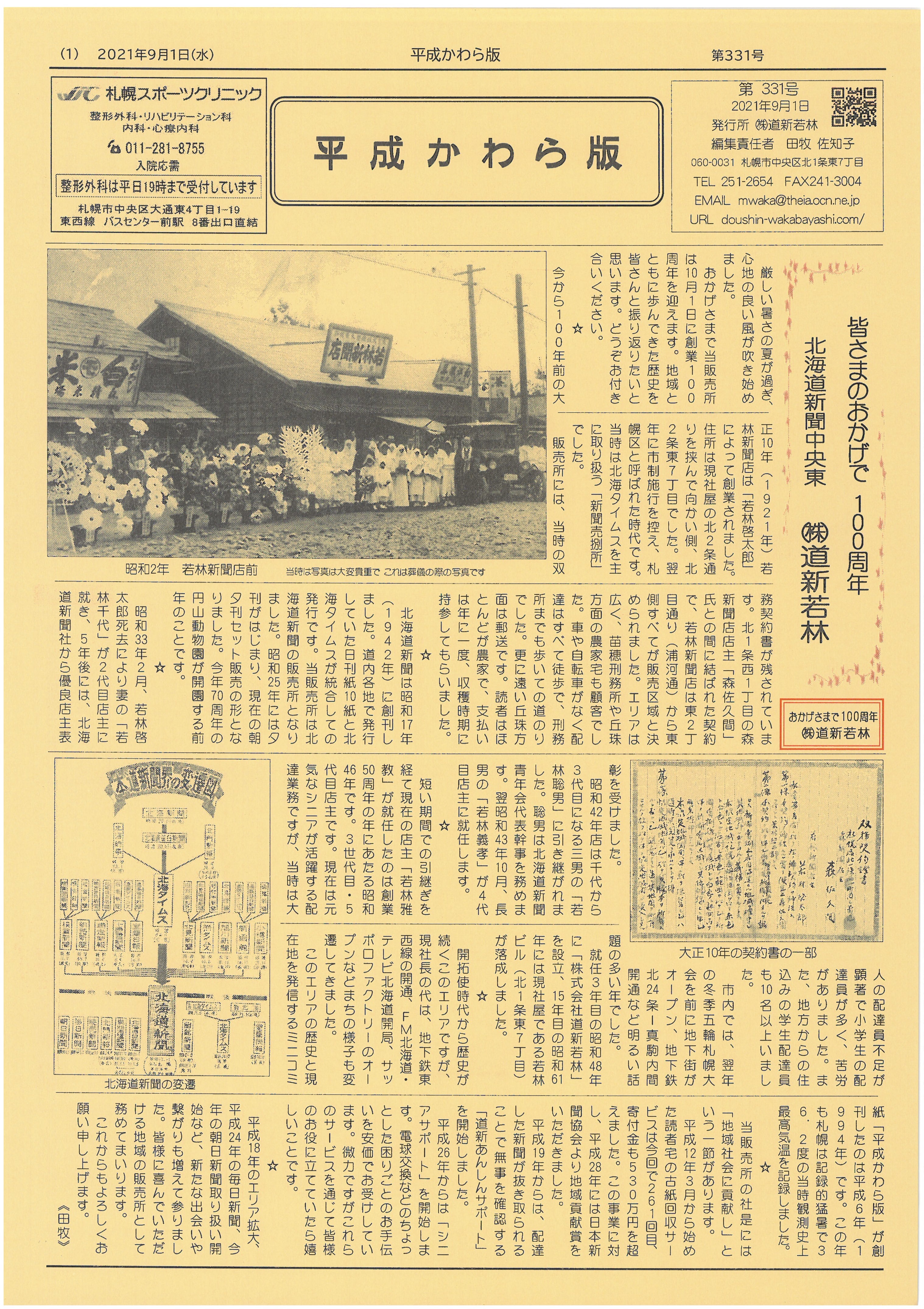 | 331 | 皆さまのおかげで 100周年 北海道新聞中央東 ㈱道新若林 | ![]() |