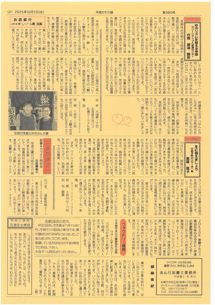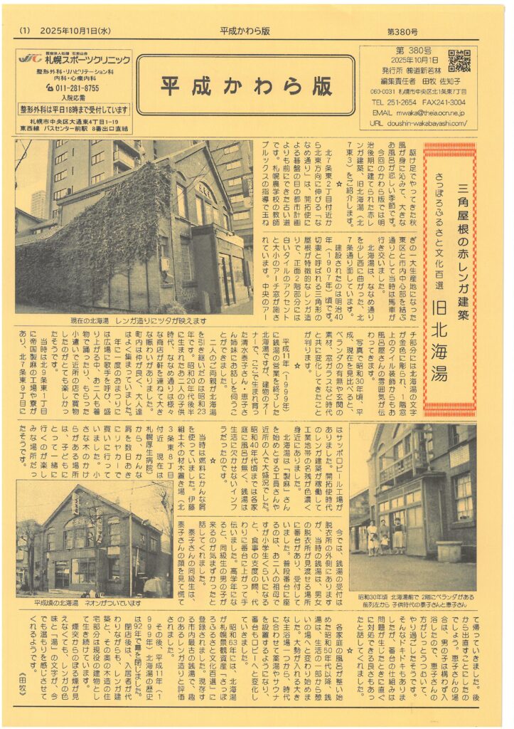 札幌の中央区東側創成イースト地区で創業104年!地元密着のミニコミ紙'平成かわら版'を31年間毎月発行中バックナンバーも無料で見られます!