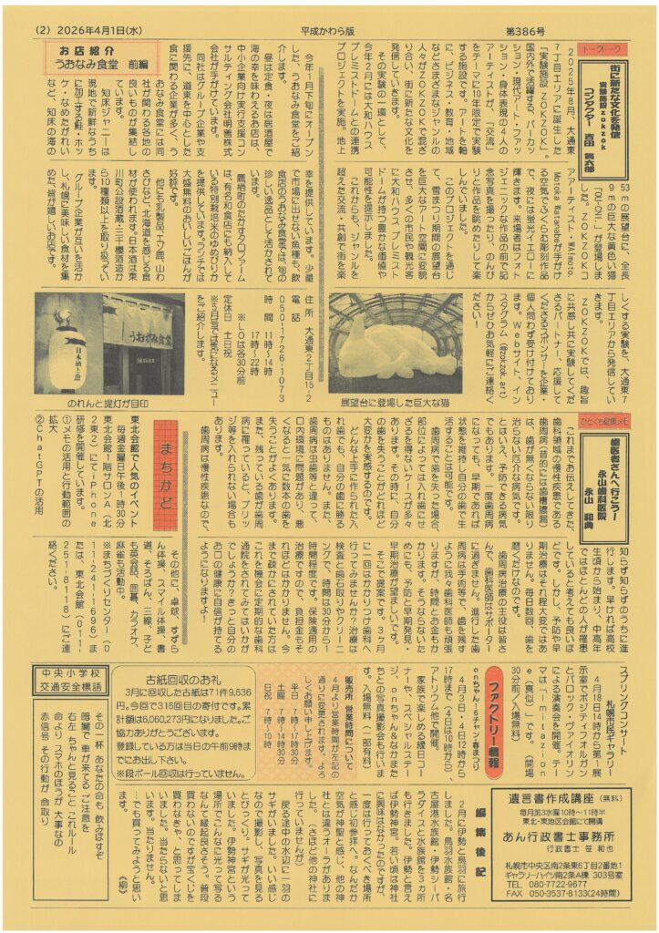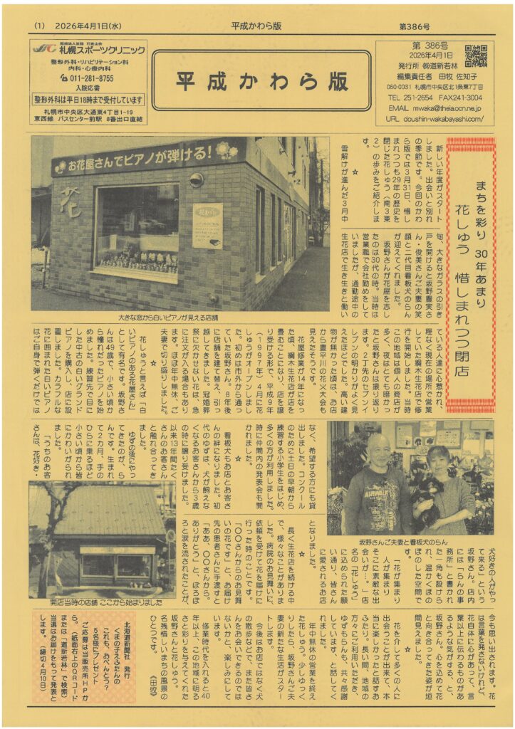 札幌の中央区東側創成イースト地区で創業104年!地元密着のミニコミ紙'平成かわら版'を31年間毎月発行中バックナンバーも無料で見られます!